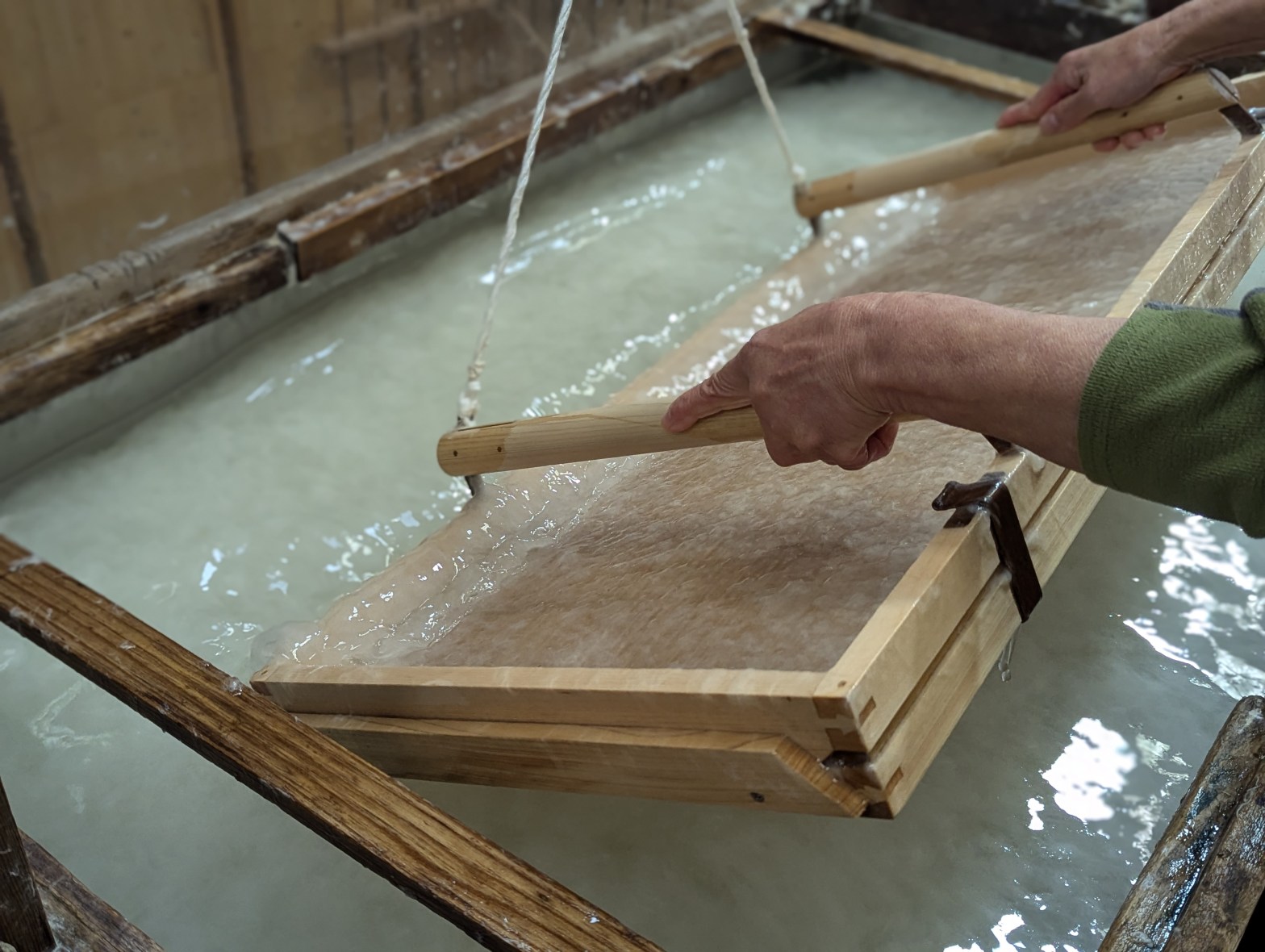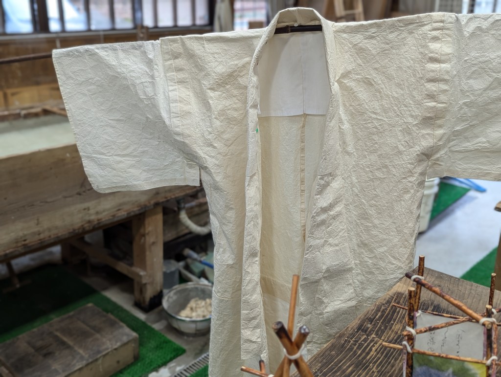 紙漉きのようすと紙衣の写真は、追加の取材を兼ねて撮りに行きました。
